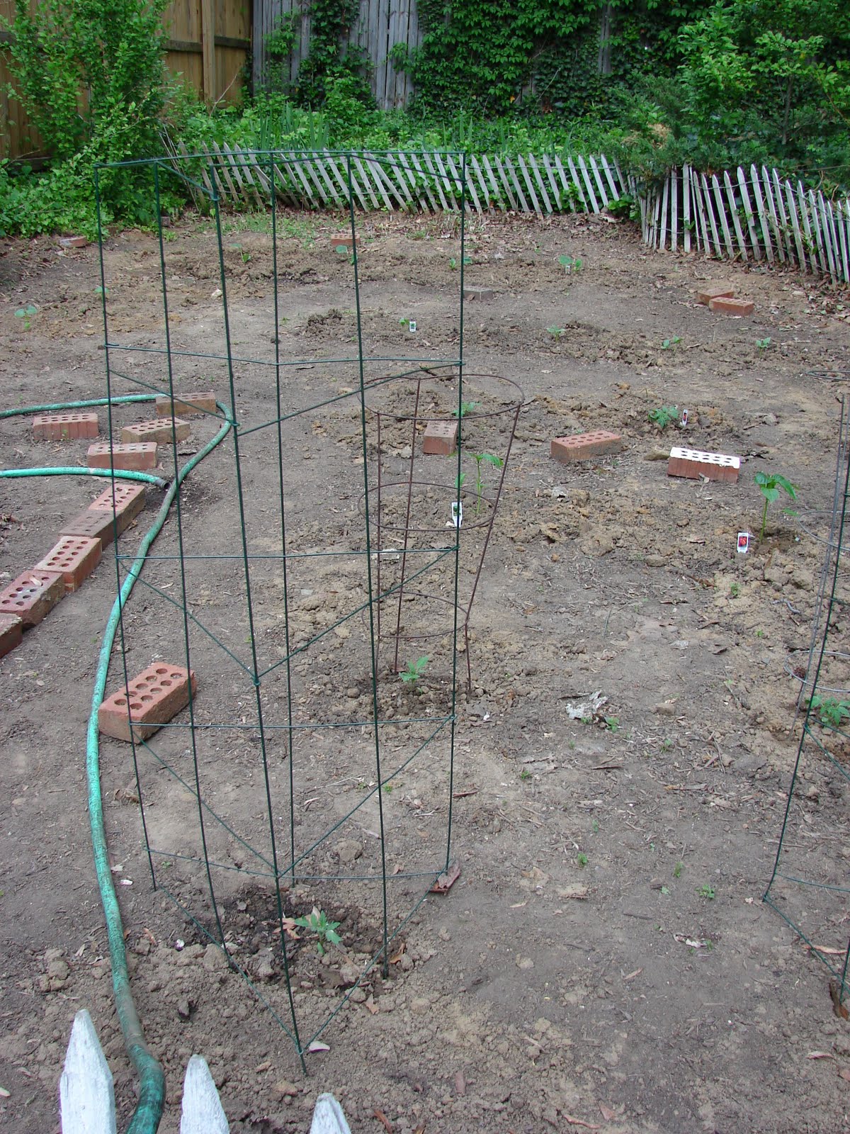 We planted two rows of green beans, two German Johnson tomatoes, four Better Boy tomatoes, one grape tomato and one Mortgage Lifter tomato. Four slicing cucumber plants, four straight neck yellow squash plants, three okra plants, two Dusky eggplant plants, one red bell pepper, one green bell pepper and one jalapeno pepper plant. The garden is very full, but I'm hoping everything does well. Dad doesn't have much faith in my organic gardening skills and keeps wanting to spray with weedkiller and fertilizers. I've made him promise he will stick to my system.