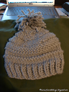 There has been knitting progress. I made my first hat. It didn't turn out exactly as it should, but it turned out cute enough for me. I was very pleased with it. I'm planning to make some to give as gifts, probably for next year, as this year has rushed away from me. This is the year of homemade treats. I'll be making more goodies this week. I'm already planning homemade gifts for next year - mostly knitted things, I think.